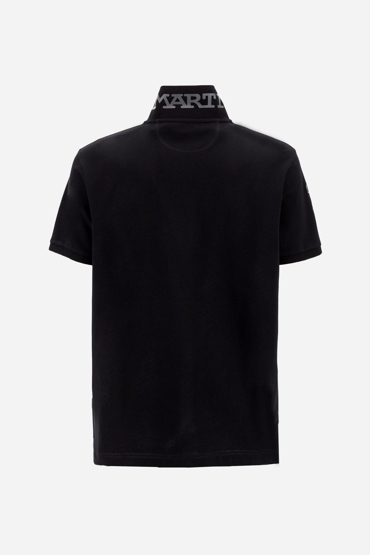 Polo uomo a manica corta in piquet stretch. Modello con apertura a due bottoni, colletto e polsini in costina tinta unita. Patch numerico applicato sulla manica e stampa monogramma a contrasto nel sottocollo. Il logo piccolo è ricamato a contrasto sul petto. Vestibilità regolare. Il modello indossa la taglia L.